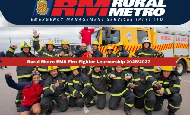 Rural Metro EMS invites passionate and qualified applicants to apply for the Fire Fighter Learnership Programme (2025–2027). This exciting opportunity is perfect for young South Africans who dream of serving their communities, saving lives, and becoming trained professionals in emergency response. The closing date for applications is 17 October 2025, so if you’ve always wanted a career in fire and rescue services—this is your time to act.